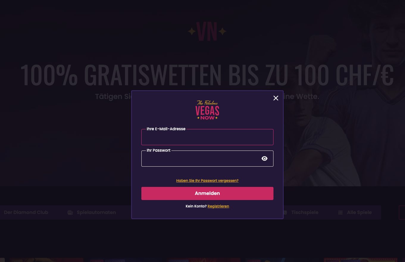 Der Zugriff auf Ihr Konto bei VegasNow ist bewusst unkompliziert gestaltet und konzentriert sich auf die wesentlichen Schritte. Die Anmeldung erfolgt über die Login-Seite, auf der Sie Ihre persönlichen Zugangsdaten eingeben.
